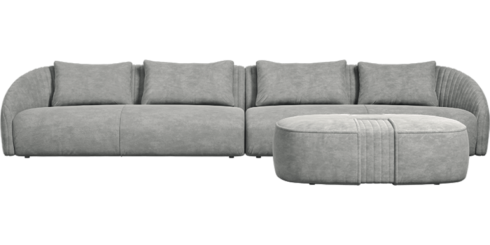 Divano dal design lineare e contemporaneo, con elementi componibili: chaise longue, tavolini rigido, angolo, 1 posto, 2 posti.